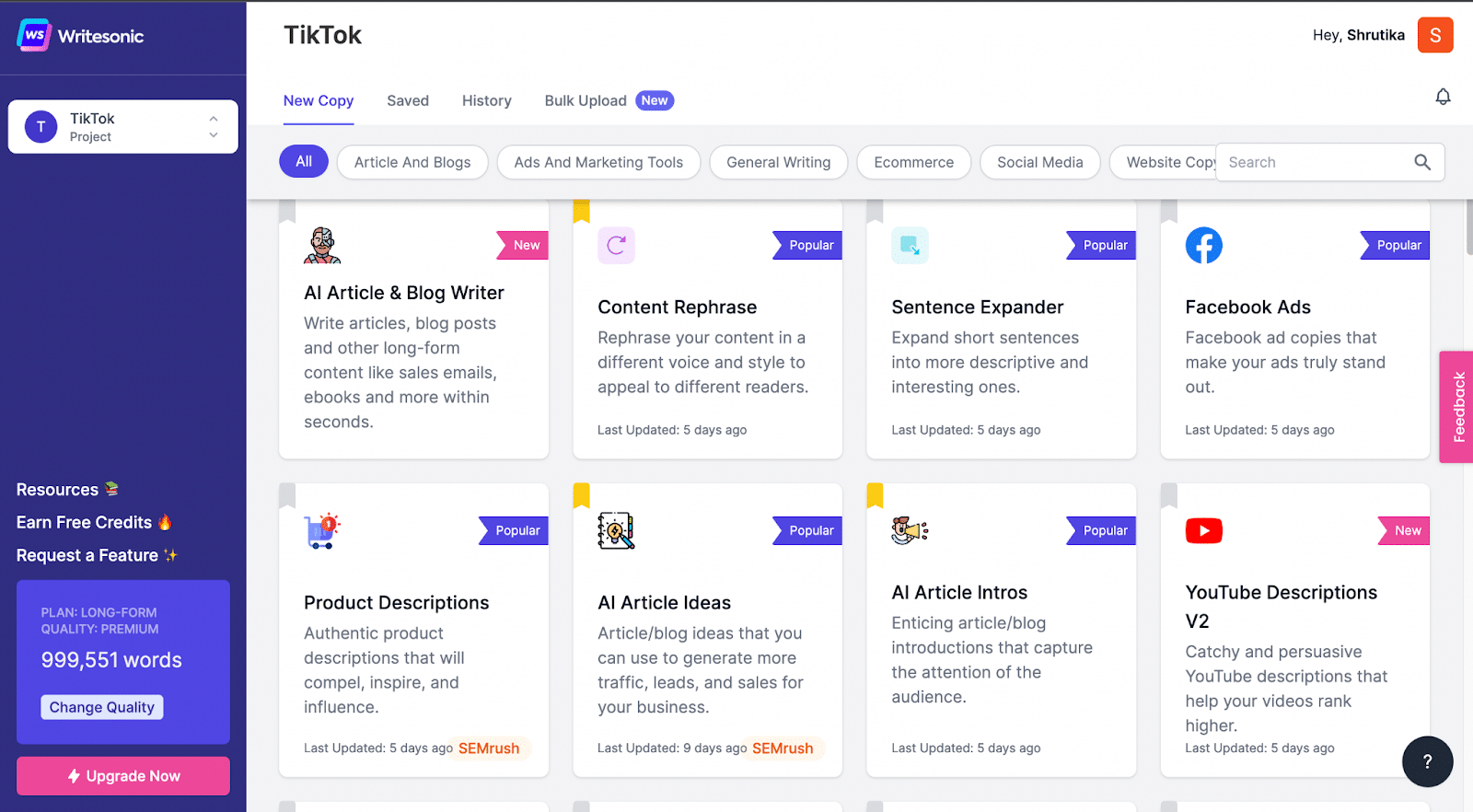 Writesonic is another helpful tool you can use to generate content ideas and product descriptions, paraphrase content and more. For example, you can use it to change the tone from formal to conversational.