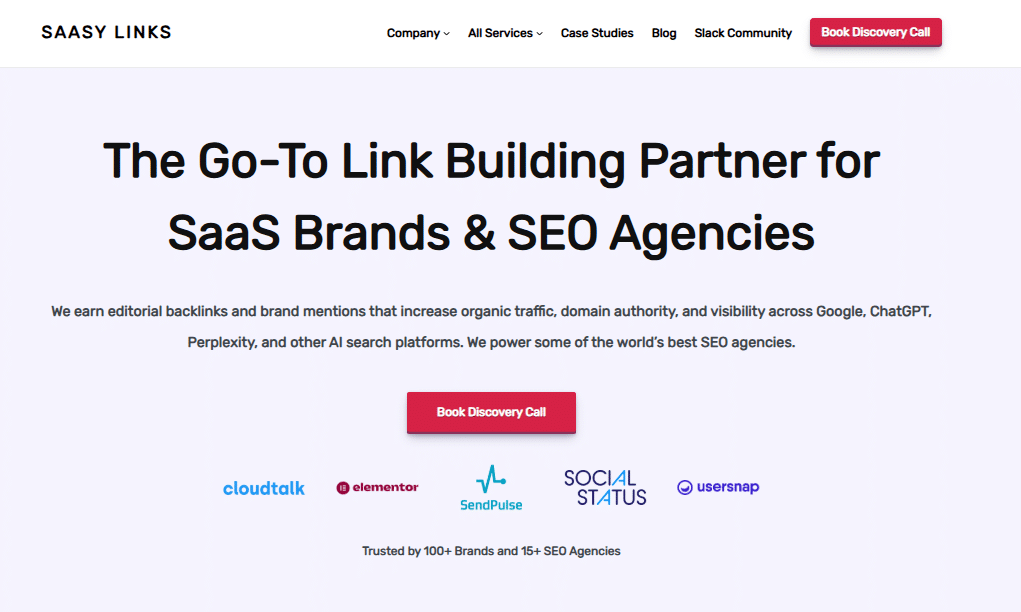 SAASY LINKS is a premier link-building agency focused on SaaS brands and white-label partnerships with SEO agencies. The team earns editorial backlinks, branded placements, and Reddit mentions that improve rankings and visibility across Google and AI search platforms such as ChatGPT, Perplexity, and Gemini. Their process combines competitor analysis, targeted prospecting, and relationship-driven outreach to secure permanent links from high-authority publishers.