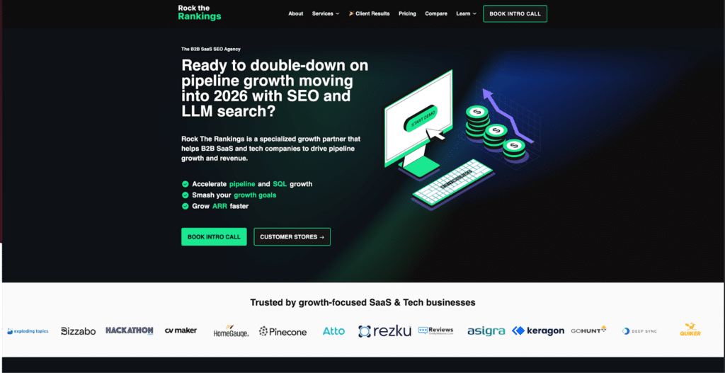 Rock The Rankings is a B2B SaaS SEO agency that partners with SaaS and tech companies to turn search into a predictable engine for demos, trials, and ARR, connecting SEO directly to pipeline and revenue. The team blends traditional SEO with LLM search (AI-driven/LLM SEO) so clients capture demand in both Google and emerging AI surfaces.